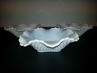 VTG Diamond HOBNAIL Ruffled EDGE White Milk Glass Candy Dish Bowl (Lot of 3)