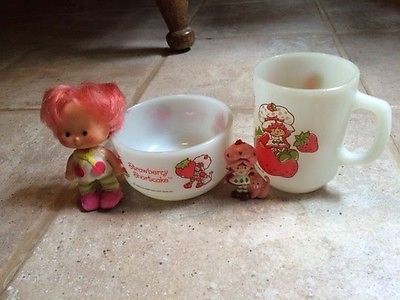 1980s Strawberry Shortcake Fire King Milk Glass Bowl Cup Anchor Hocking incDolls
