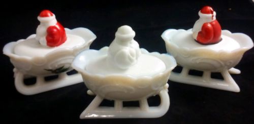 Title (ebay affiliate link): West Moreland Milk Glass Santa & Sleigh Candy Dish Hand Painted & Signed