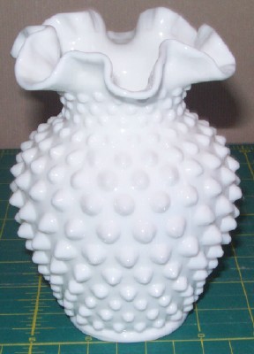 Fenton Milk Glass Hobnail Double Crimped Ruffled Vase
