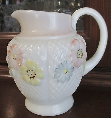 Vintage Consolidated COSMOS Milk Glass 5" Milk Pitcher Creamer Colored Floral