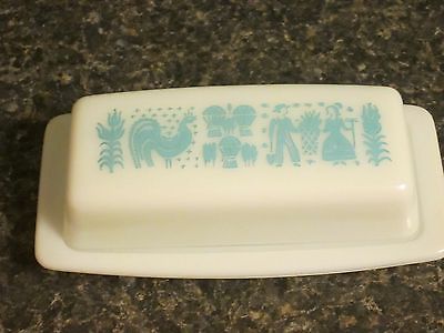 Title (ebay affiliate link): Vintage Pyrex Amish Butterprint Butter Dish Turquoise Pattern on Milk Glass Nice