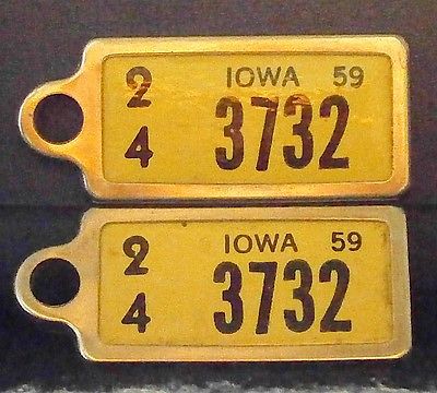 Title (ebay affiliate link): Vintage 1959 Pair of IOWA Disabled Veterans DAV Mini License Plate Key Chain