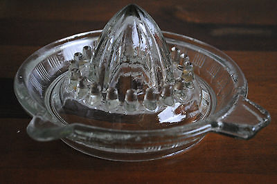 Title (ebay affiliate link): VINTAGE CLEAR PRESSED DEPRESSION GLASS CITRUS JUICER RIM POUR HANDLE**LIKE NEW**