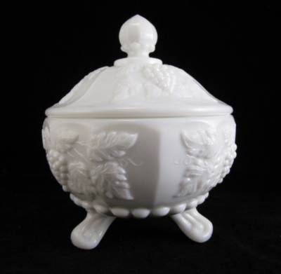 Westmoreland Paneled Grape Milk Glass Candy Dish w Lid