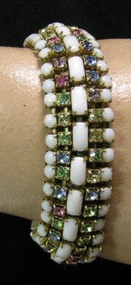 Vintage PASTEL & MILK GLASS Rhinestone 6.75" Bracelet