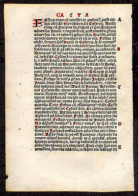 Title (ebay affiliate link): 1525 Bible Leaf New Testament Acts of The Apostles Chapter 25 Roman Catholic