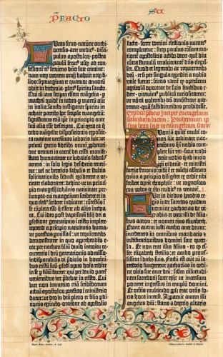 Title (ebay affiliate link): 1894 GUTENBERG BIBLE SHEET 1455 FACSIMILE Antique Chromolithograph Print