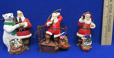 Title (ebay affiliate link): 3 Vintage Coca Cola Santa Christmas Figurine Ornaments Trim A Tree 1995 & 1996