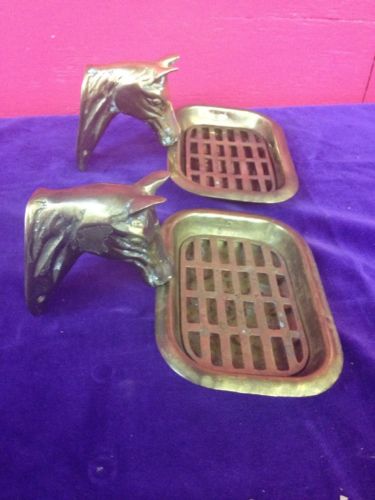 Pair Of Vintage Horses Head Wall Mount Brass Soap Dishs