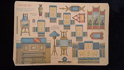 ANTIQUE PAPER TOY FURNITURE SHEET PRINTED BY MCLOUGHLIN BROTHERS - PARLOR UNCUT