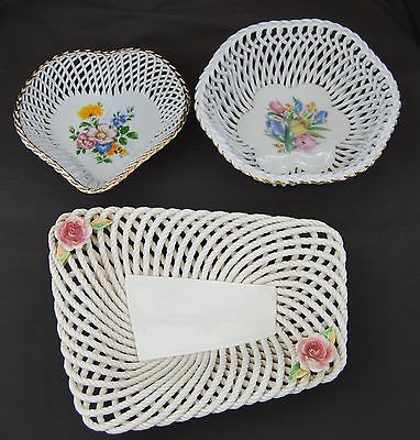 Woven Porcelain Dish Lucru Manual Capodimonte Lot of 3