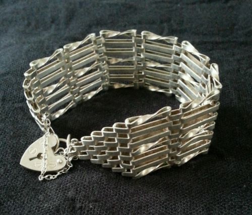 Title (ebay affiliate link): Vintage Sterling Silver 7 Bar Gate Bracelet Padlock Clasp Full Hallmarks 1975