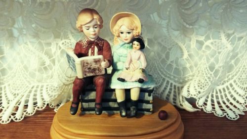 Title (ebay affiliate link): JAN HAGARA porcelain figurine MEMORIES JIMMY AND KAREN h3036 1985 signature
