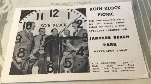 Title (ebay affiliate link): Portland Oregon Koin Klockers 1949 Postcard Picnic Invitation Jantzen Beach