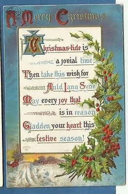 Title (ebay affiliate link): Christmas embossed postcard/Old English style writing/holly/berries/