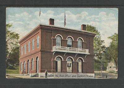 1910 BELFAST ME POST OFFICE AND CUSTOM HOUSE POSTCARD LEVANT MAINE POSTMARK