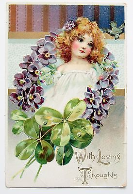 SALE Pretty Brundage GIRL Loving Thoughts Tuck Postcard Violets