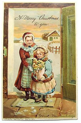 SALE PFB Children GIRLS Bring Flowers Merry CHRISTMAS Postcard
