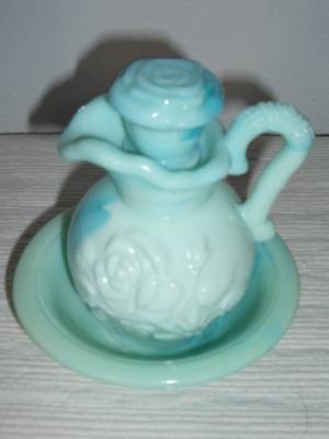 AVON JADEITE GREEN MILK GLASS Pitcher, Bowl, & Stopper