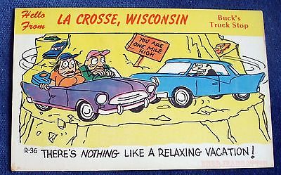 Buck's Truck Stop La Crosse WI Comic Postcard "You Are One Mile High"