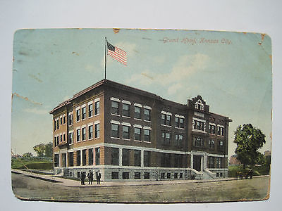 Kansas City KS Grand Hotel Postcard; 1910 Postmark Cancel; Poor
