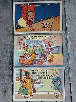 Lot Of 3 Vintage Black Americana Postcards Comic Humor 1940's Unposted Original