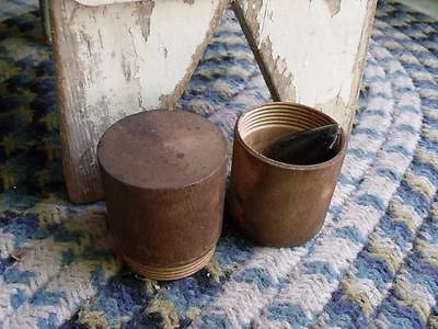 Old Primitive Vintage Cast Iron Plumb Bob In Turned Wood Box