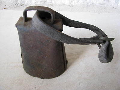 Title (ebay affiliate link): ANTIQUE VINTAGE LARGE COW BELL- 4 1/2 X 3'' with Leather Strap