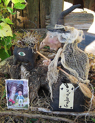 Primitive Halloween Witch Cauldron cloth doll country folk art