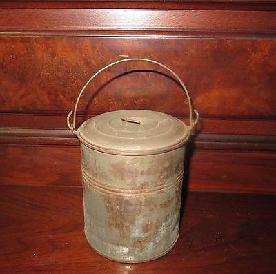 Vintage Antique Primitive Small Metal Lunch Pail Berry Bucket With Lid