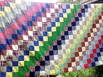 Primitive Vtg Country Rustic Farmhouse Large Hand Made Patchwork Quilt 86" x 89"