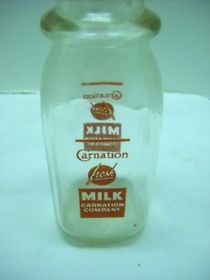 carnation glass milk bottle half pint