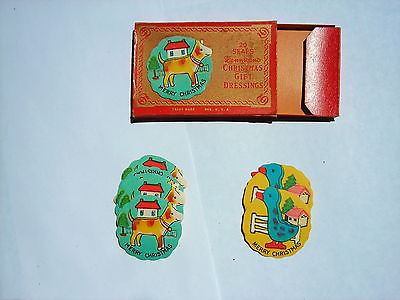 Vtg Collectible Dennison Gift Wrap Seal's Christmas Ephemera w/Box Cows & Geese