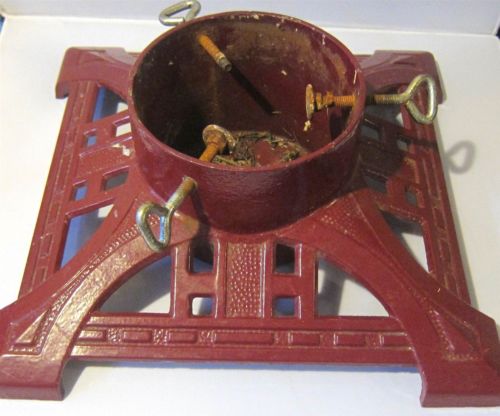 Title (ebay affiliate link): VINTAGE ARTS & CRAFTS / MISSION 14" CAST IRON RED CHRISTMAS TREE STAND