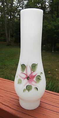 Vintage Hurricane Lamp CHIMNEY ~ Hand Painted ~ MILK GLASS ~ Pink Flower!