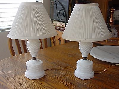 Title (ebay affiliate link): VINTAGE WHITE ELECTRIC TABLE LAMPS SET PAIR OF 2 MILK GLASS HOBNAIL with shade
