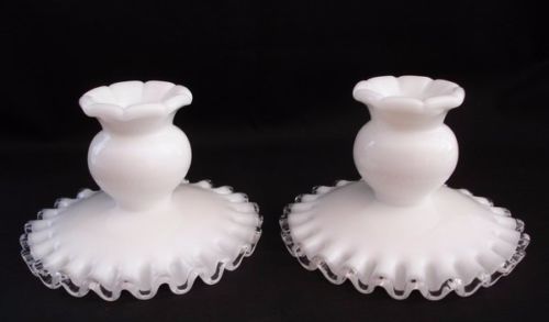 Fenton Silver Crest Milk Glass Pair Candle Holders