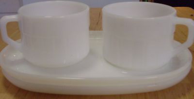 2 Federal White Milk Glass Snack Trays & Cups Nice!!!