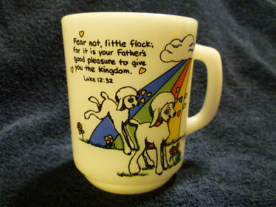 Anchor Hocking Milk Glass Mug Luke 12:32 with Lamb