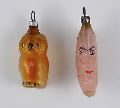 Title (ebay affiliate link): 2 Miniature Blown Glass Feather Tree Ornaments Man in Moon and Owl