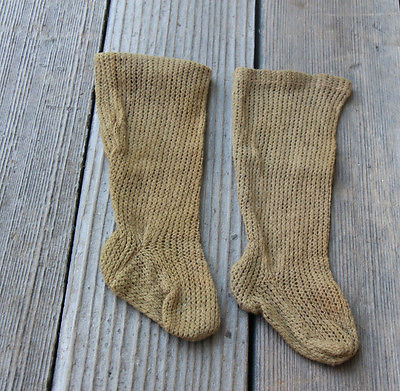 Title (ebay affiliate link): Lovely Antique French Fashion China Dark Green Open Weave DOLL SOCKS Stockings
