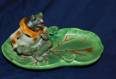 Occupied Japan Porcelain Figural Frog Lily pad Tray