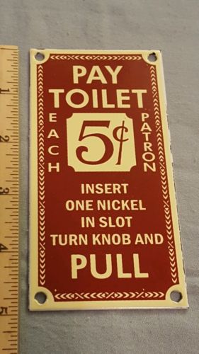 5 CENT SUBWAY BUS PORCELAIN PAY TOILET SIGN IN MINT CONDITION