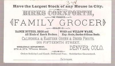 Denver, Colorado - advertising card for Birks Cornforth (family grocer) 1880's