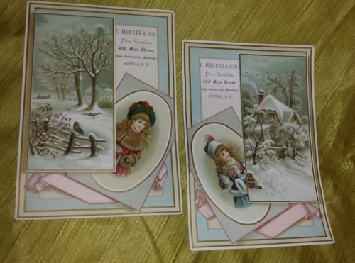 2 E. MENKER & Son PURE CANDiES Buffalo NY Trade Cards Embossed glitter c. 1880's