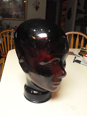 Vintage Maroon Pressed Glass Mannequin Head Form Human Deco Display Hat, Wig
