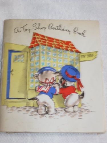 Title (ebay affiliate link): Vintage 1940s Child's Birthday Card Book Toy Shop Cut-Out Paper Doll Figures