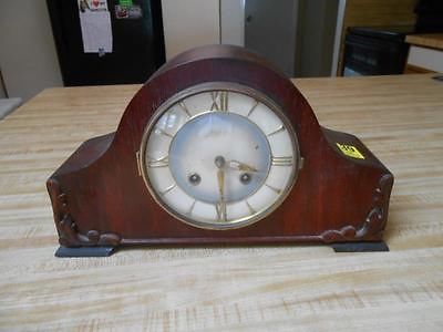ANTIQUE JUNHANS WIND MANTLE CLOCK WITH KEY & PENDULUM GERMANY