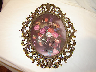 VINTAGE OVAL METAL FRAME WITH FLORAL PRINT CONVEX GLASS